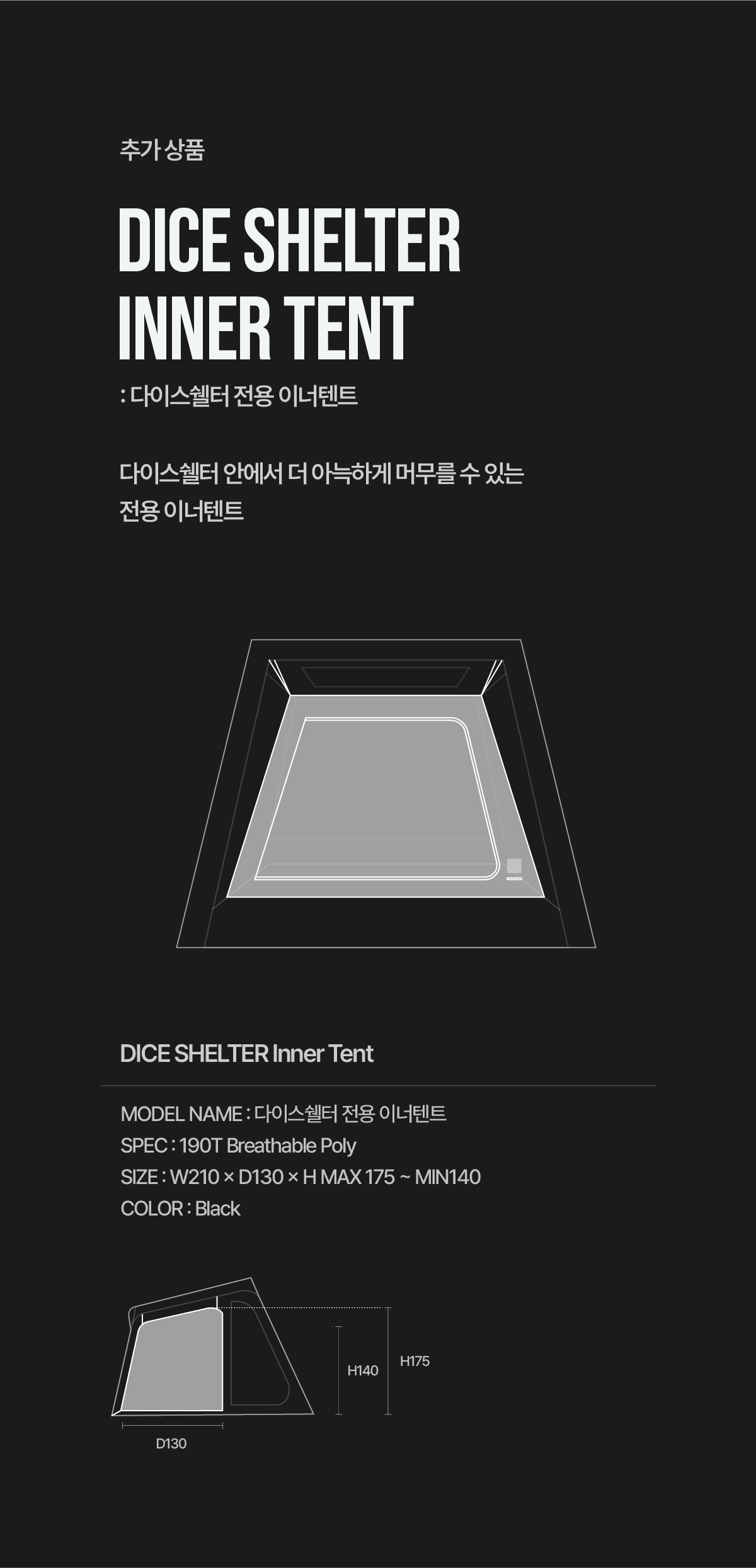 본 상품은 다이스쉘터 전용 이너텐트입니다.